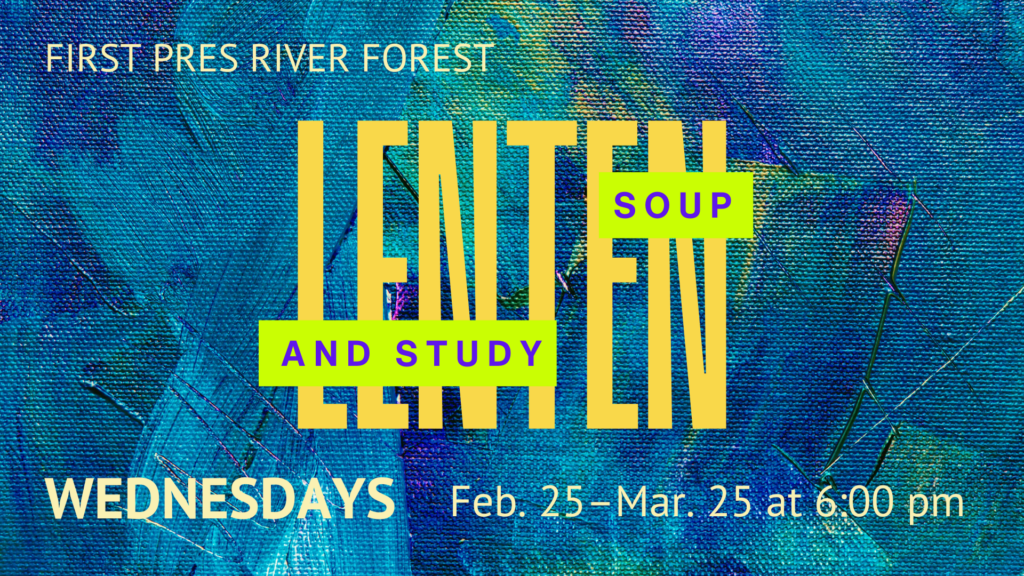 Join us each Wednesday from February 25 through March 25 for a simple soup supper starting at 6:00 pm, followed by small group study time.